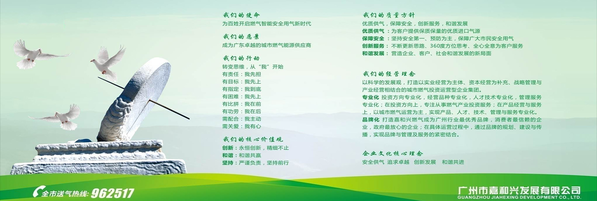 ——廣州市嘉和興發(fā)展有限公司于2001年3月1日注冊成立,主要從事瓶裝液化石油氣(LPG)批發(fā)貿(mào)易,民用、工業(yè)用液化石油氣,工業(yè)用氣體,汽車加氣站及危險品物流運輸?shù)龋偛吭O(shè)在廣州。目前公司經(jīng)營三個液化氣充裝站、一個汽車加氣站:白云區(qū)神山達嶺液化石油氣站、白云區(qū)加禾氣站和佛山市南海區(qū)冠順氣站,黃埔區(qū)塘口汽車加氣站,總庫容接近800立方米。